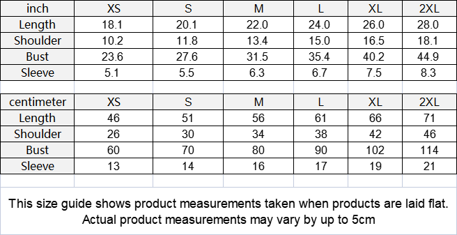 This size guide shows product measurements taken when products are laid flat. Actual product measurements may vary by up to 5cm